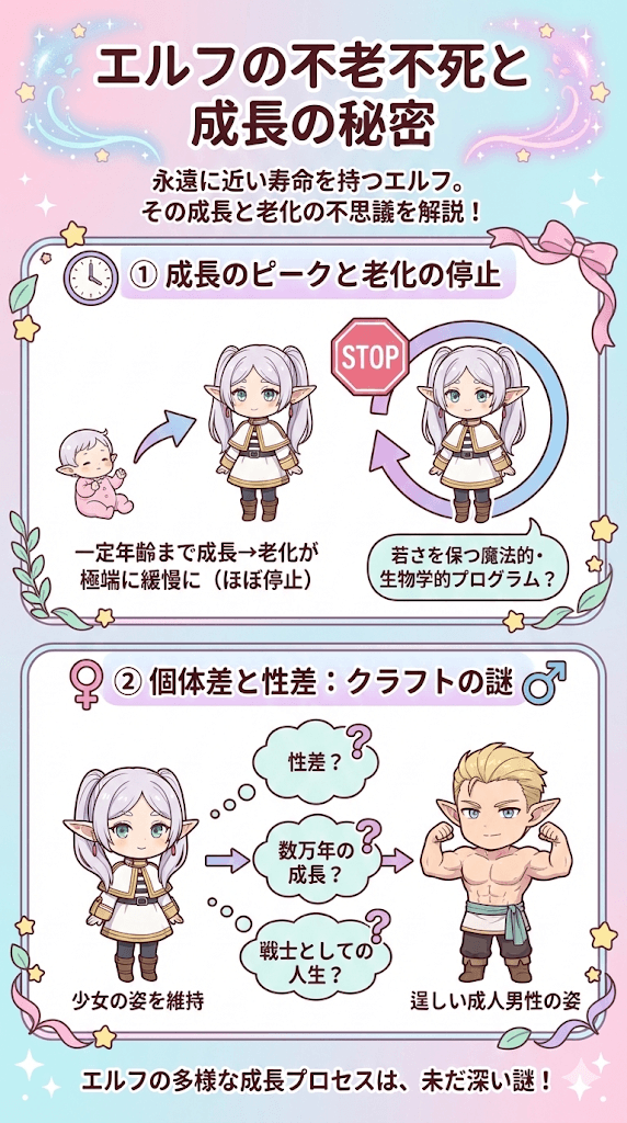 - エルフという種族が持つ驚異的な長寿のメカニズムと外見年齢の相関関係