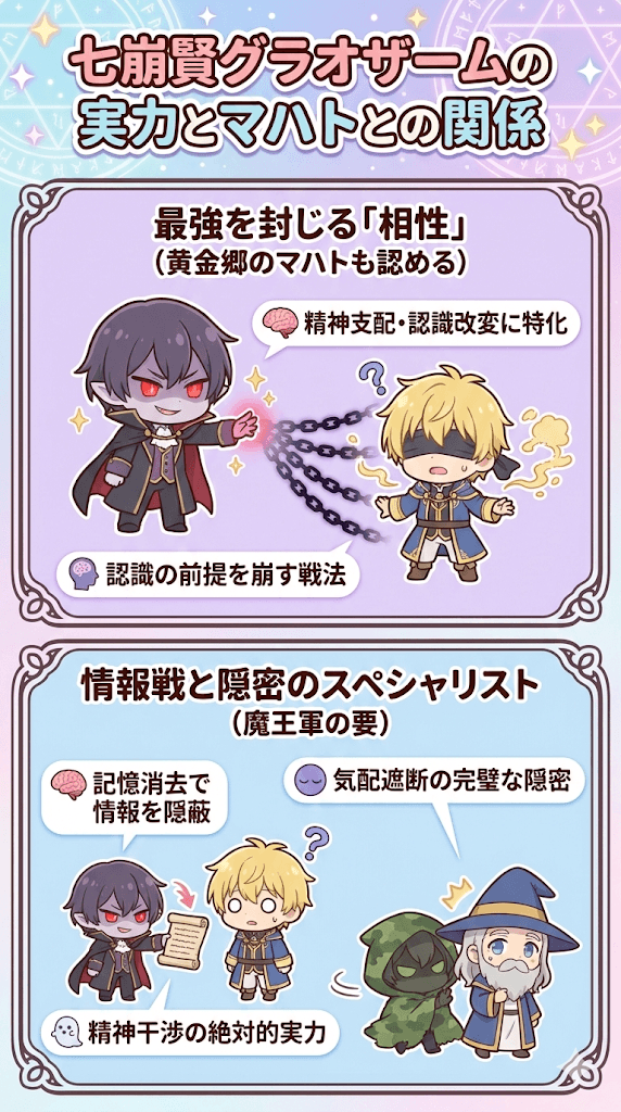 七崩賢最強と謳われる黄金郷のマハトをして「相性が最悪」と言わしめるその能力は、物理的な破壊力や魔力量の多寡よりも、精神的な支配と認識の改変に特化しています。