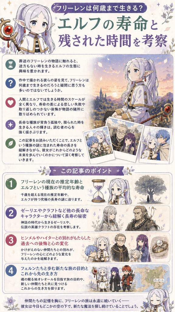 この記事をお読みいただくことで、エルフという種族の謎に包まれた寿命の長さを紐解きながら、彼女がこれからどのような未来を歩んでいくのかについて深く考察していきます。