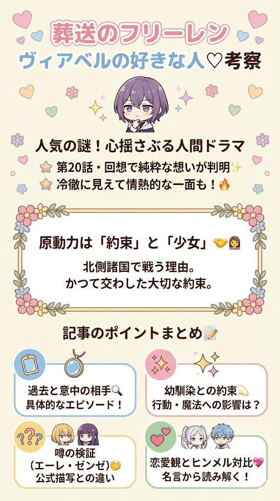 葬送のフリーレンのヴィアベルの好きな人について深掘りすることで、彼の人柄や物語の奥深さが見えてきました。