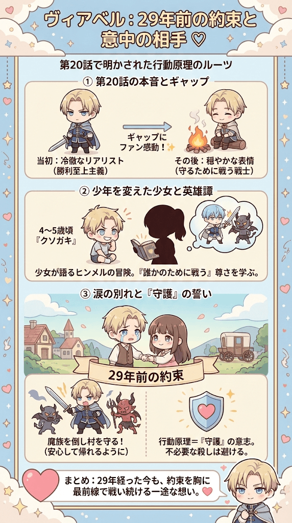 ヴィアベルの恋愛観を掘り下げていくと、勇者ヒンメルとの興味深い対比が見えてきます。