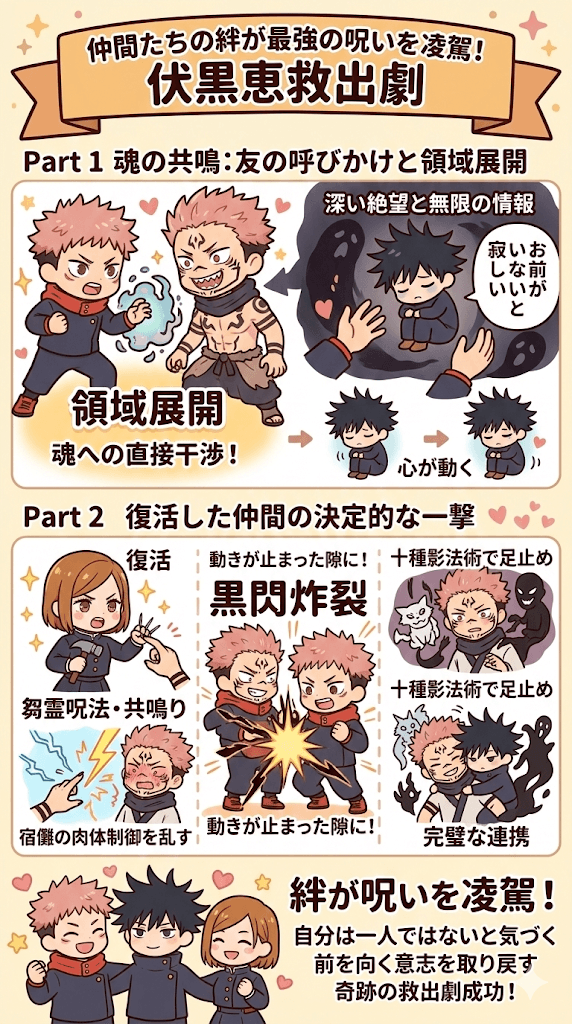 仲間たちの絆が、最強の呪いすらも凌駕した瞬間でした。
