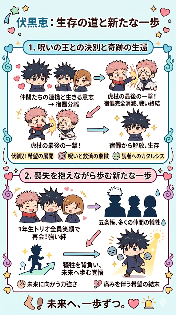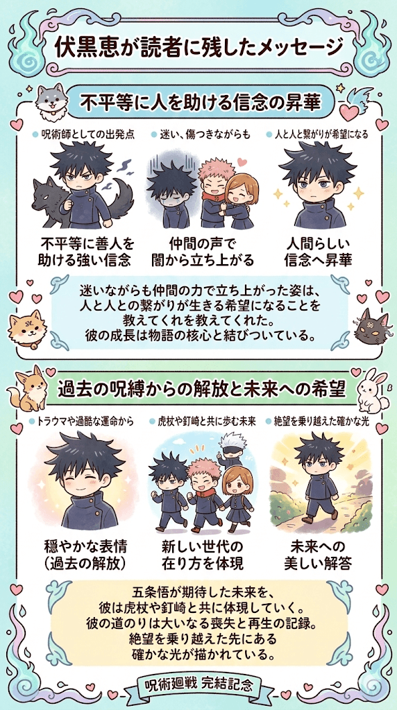 要するに、伏黒恵の結末は、絶望を乗り越えた先にある確かな光を描き出していたということです。