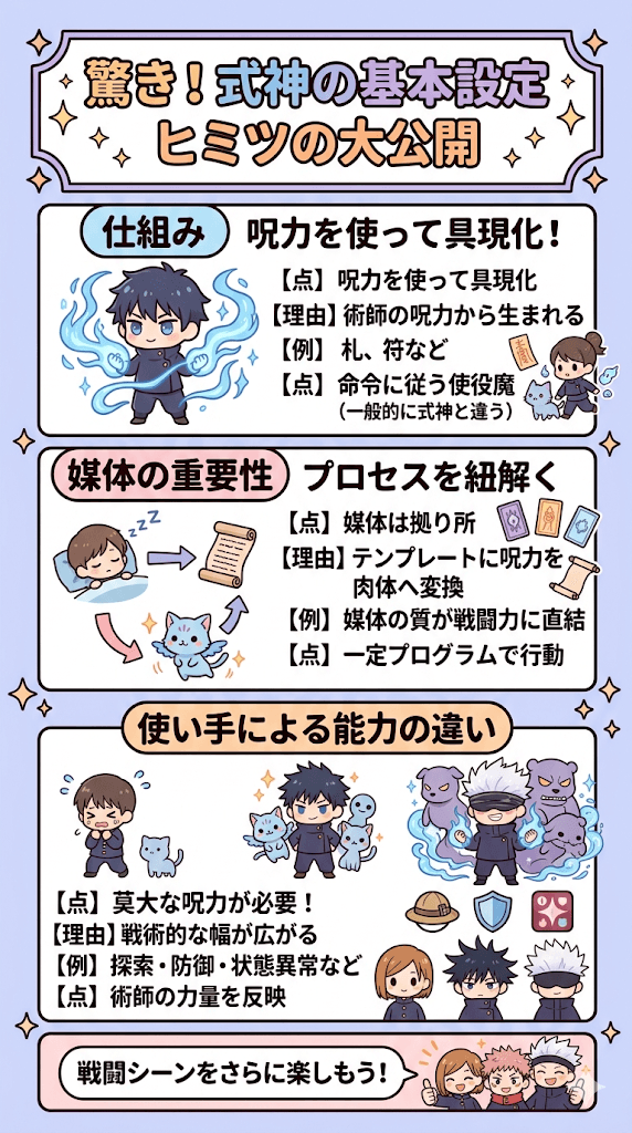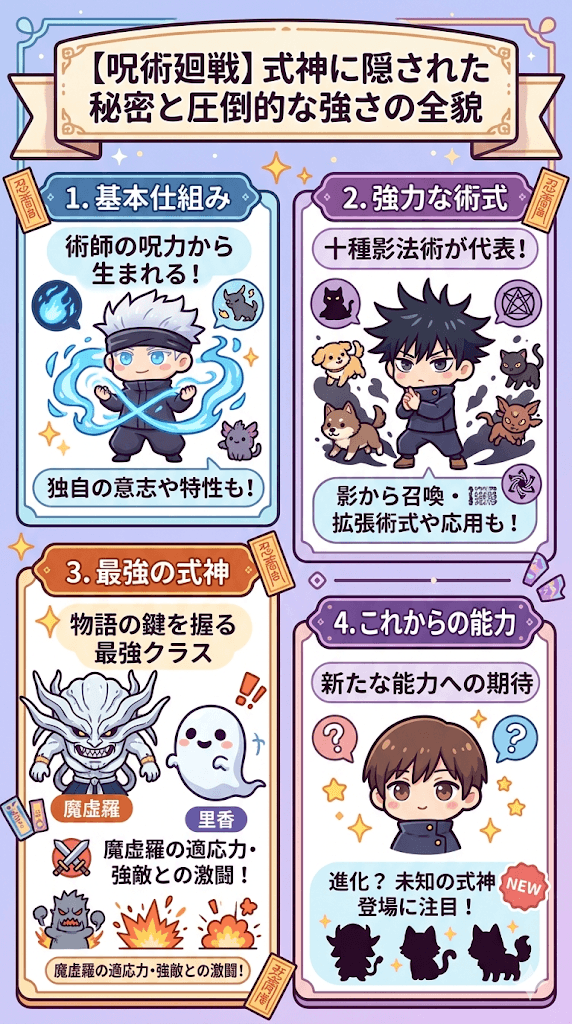 犠牲を伴いながらも力を底上げしていくこのシステムは、呪術廻戦の式神という存在の奥深さを象徴する設定だと言えるでしょう。