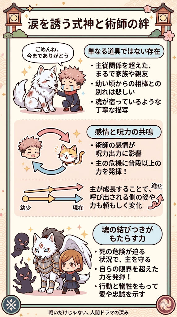 前述の通り、彼らは単なる呪力の塊ではなく、術師との間に確かな絆を育むことができます。