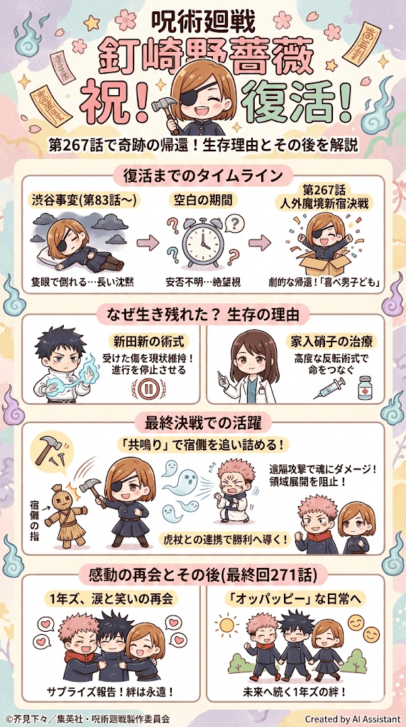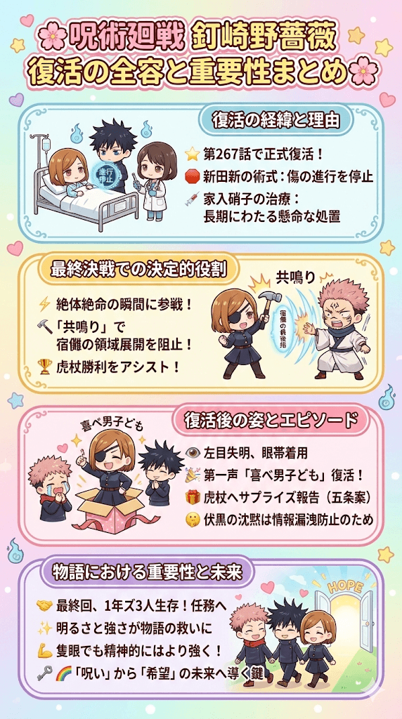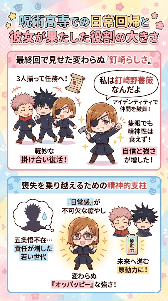 - 釘崎野薔薇の復活は、物語を「呪い」の連鎖から「希望」の未来へ導く鍵だった