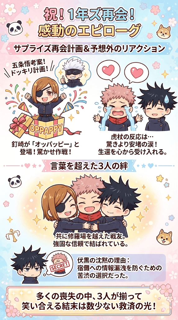 - 虎杖・伏黒との再会と1年ズの絆が描かれたエピローグ
