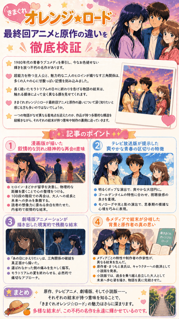 きまぐれオレンジ☆ロード最終回アニメと原作の違いについて深く知りたいと感じる方も多いのではないでしょうか。