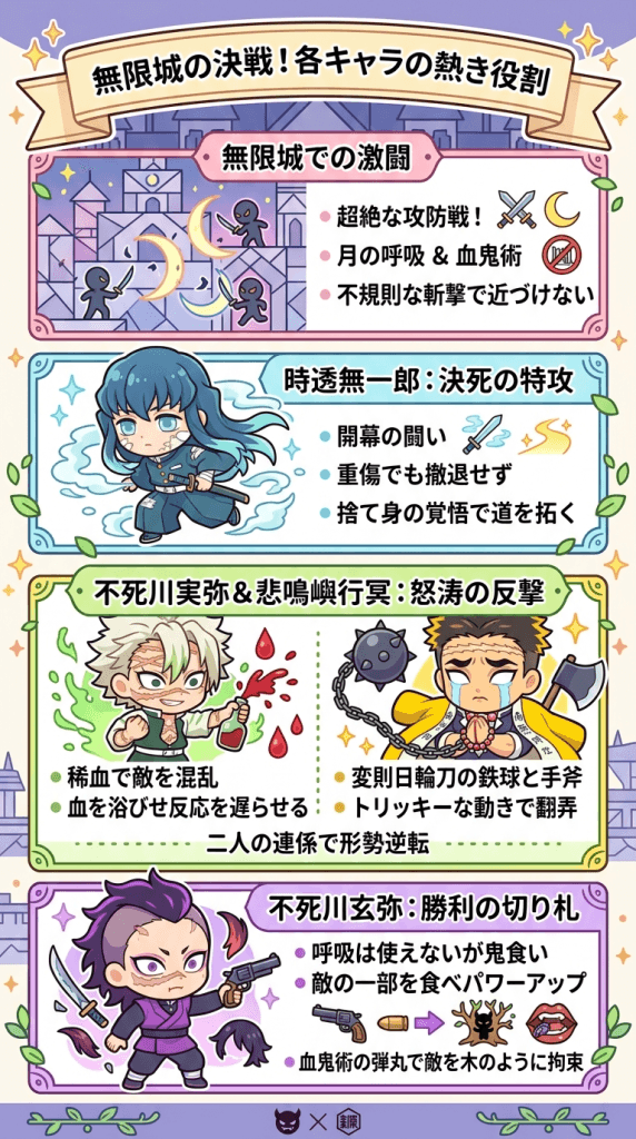 - 激絶を極めた無限城での死闘と各キャラの役割