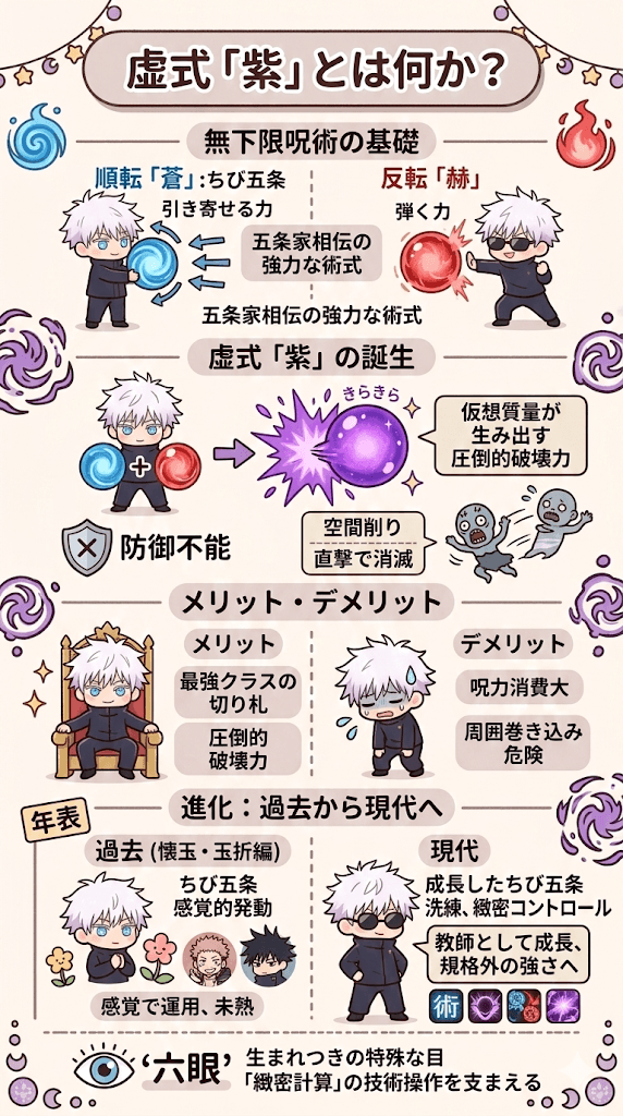 • 五条悟が使用する虚式紫の基本的な仕組みと能力