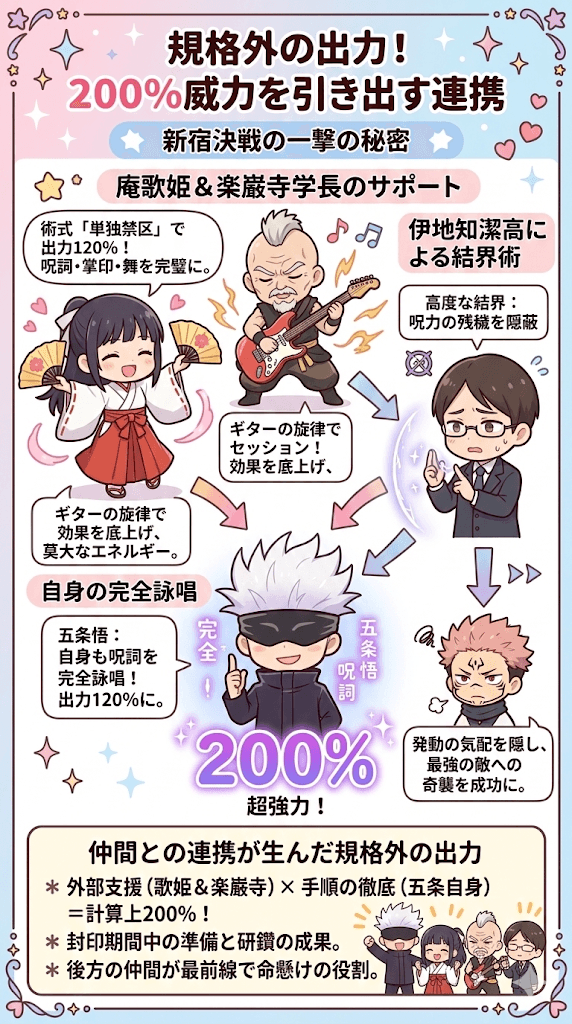 外部からの強力な支援と、自身の手順の徹底という二つの要素が掛け合わさることで、計算上200%という前代未聞の威力が算出されたわけです。