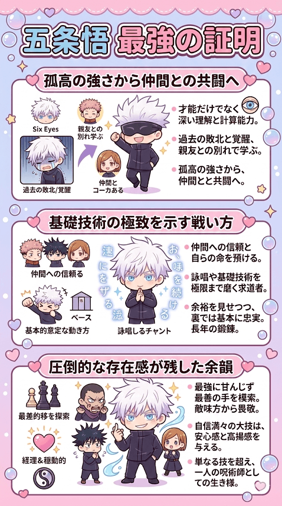 呪術という体系に対する深い理解と、実戦で完璧に運用するための緻密な計算能力が備わってこそ最強足り得るのだということが示されました。