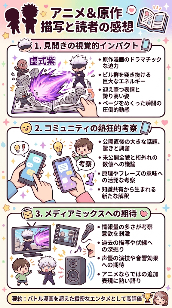 とりわけ、人外魔境新宿決戦の幕開けにおいて放たれた虚式紫の完全詠唱は、圧倒的なスケールと緻密な設定により、多くのファンに深い感銘を与えました。