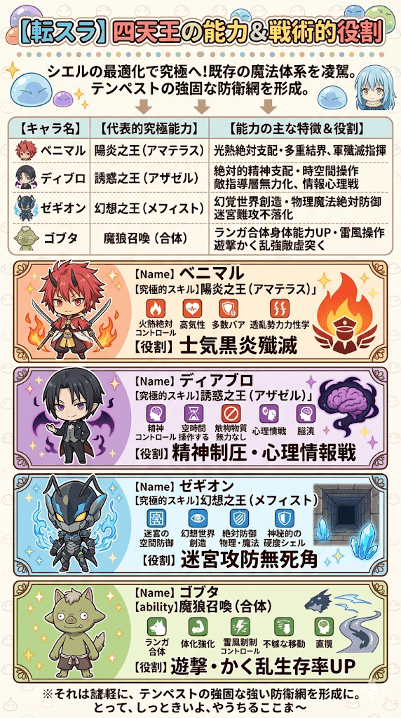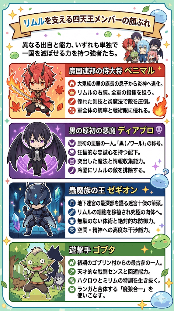 - リムルを支える四天王メンバーの顔ぶれ