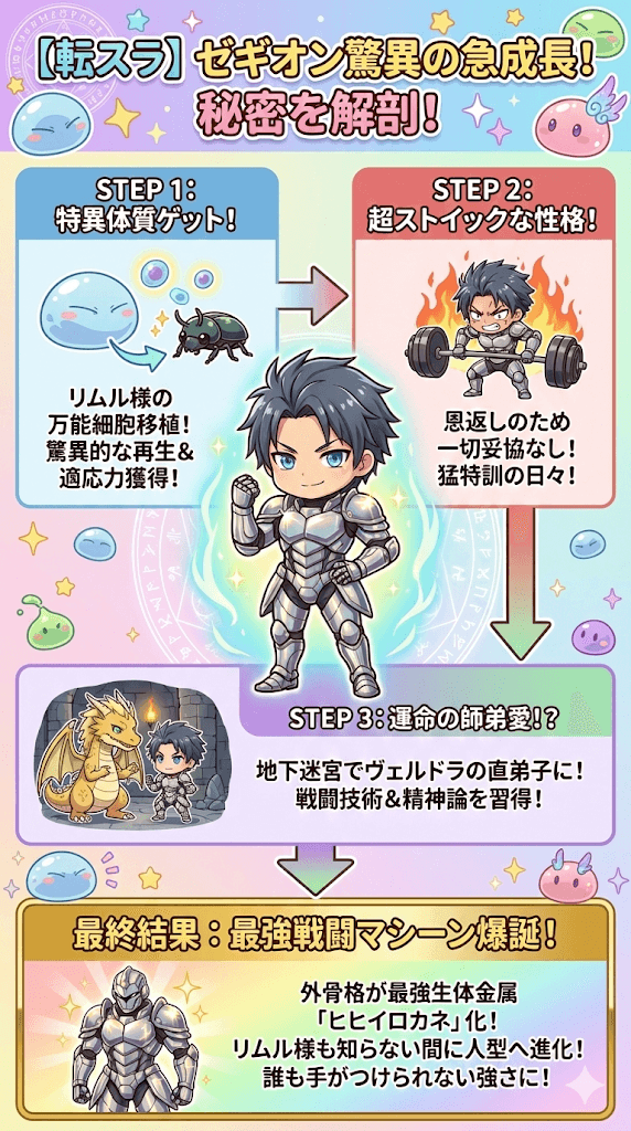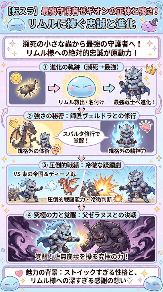 なぜ彼はこれほどまでに強くなったのか?その背景にある、ストイックすぎる性格とリムルへの感謝の想いを知れば、きっとあなたもゼギオンの虜になるはずです。