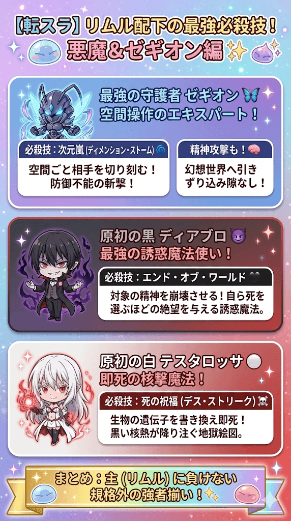 ただ強いだけでなく、その技が生まれた経緯や使う理由を知ることで、転スラの世界がより魅力的に見えてくるのではないでしょうか。