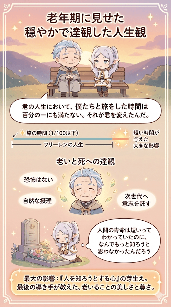 彼にとって老いや死は恐怖ではなく、自然な摂理であり、次世代やフリーレンに意志を託していく過程に過ぎませんでした。