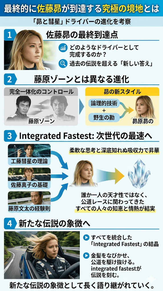 工藤彗星の理論、佐藤真子の基礎、そして藤原文太の経験則。これらすべての要素を飲み込み、昇華させたとき、過去のどのドライバーとも異なる「すべてを統合した最速」の結晶となるでしょう。