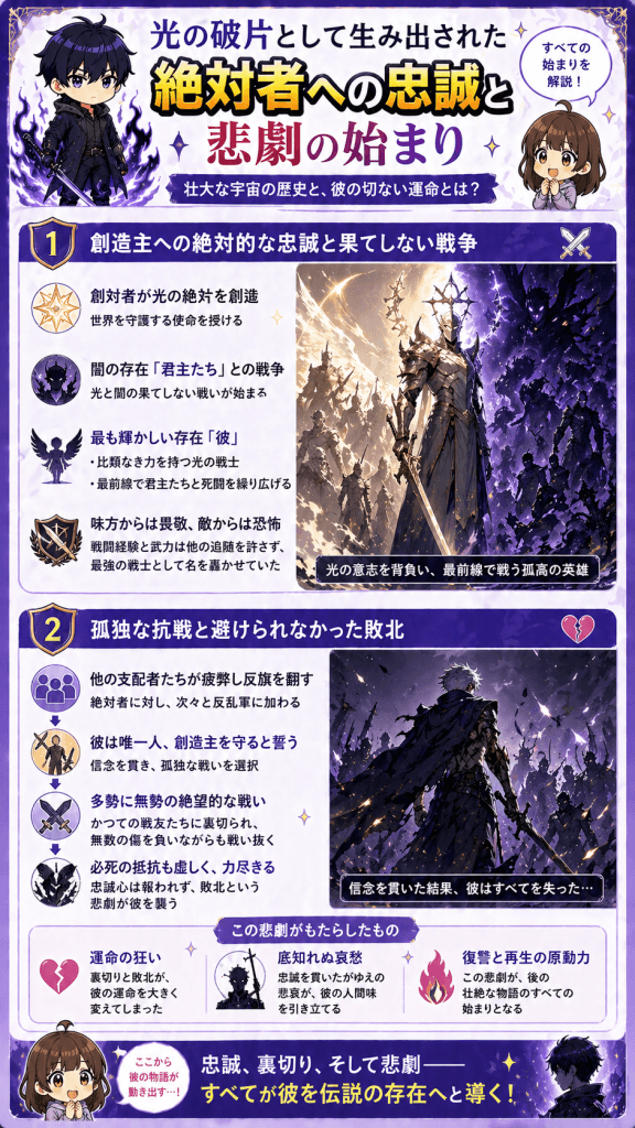 - 光の破片として生み出された絶対者への忠誠と悲劇の始まり