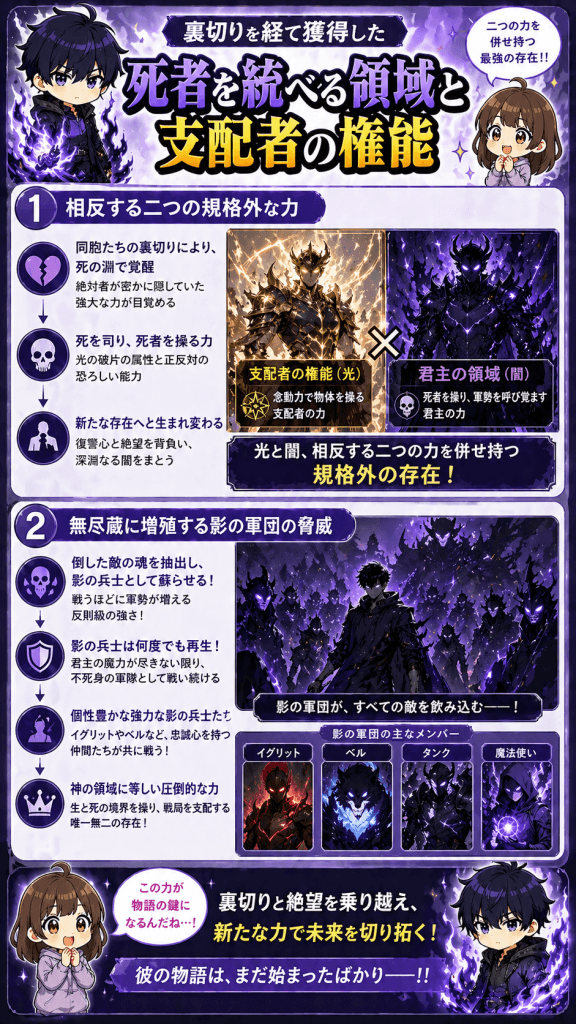 この力に覚醒したことで、彼は死者を己の兵士として使役する新たな存在へと生まれ変わりました。