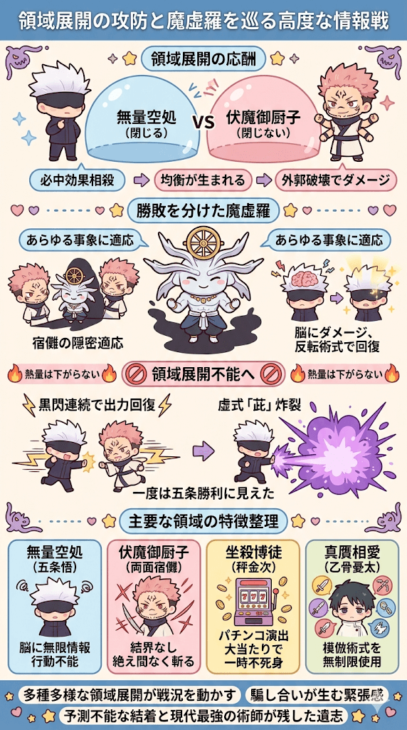- 領域展開の応酬と魔虚羅を巡る高度な情報戦