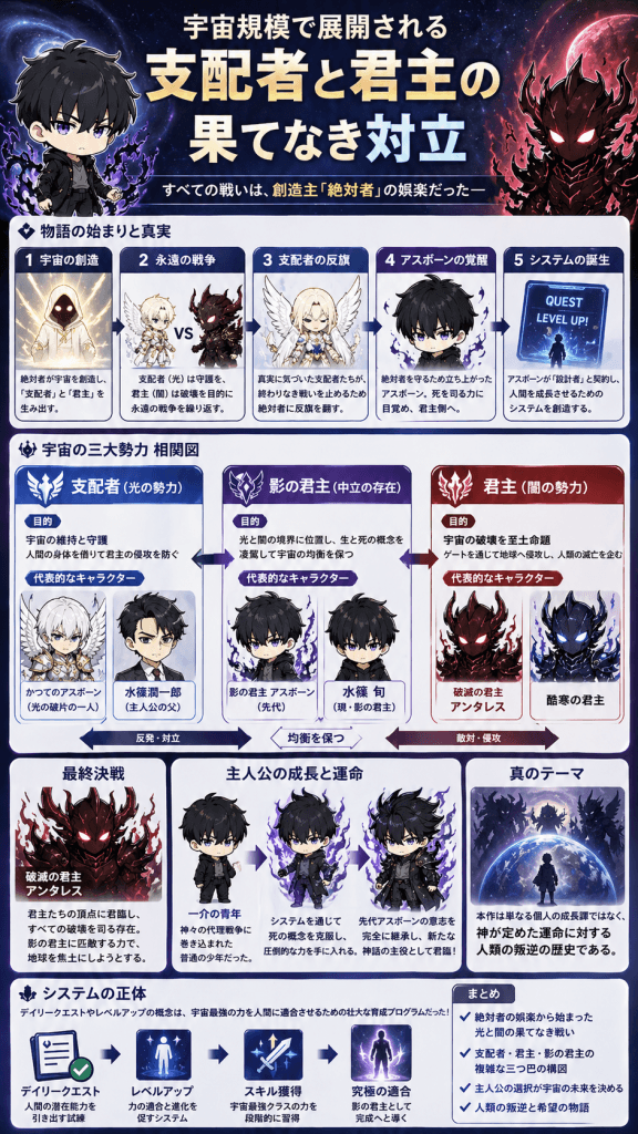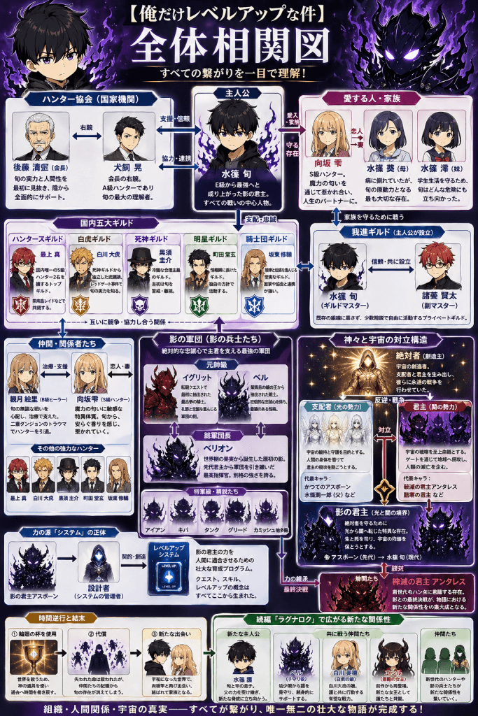 俺だけレベルアップな件相関図の最も高い次元に位置するこの対立構造を理解しなければ、物語の真髄に触れることはできません。