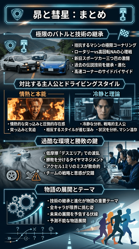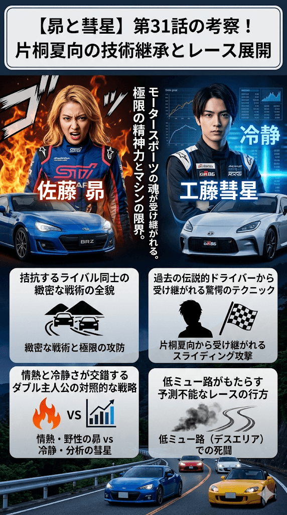 過去の伝説的なテクニックが現代のレースにどのように蘇るのか、そして対照的な個性を持つ若き才能たちがどのような軌跡を描くのか。