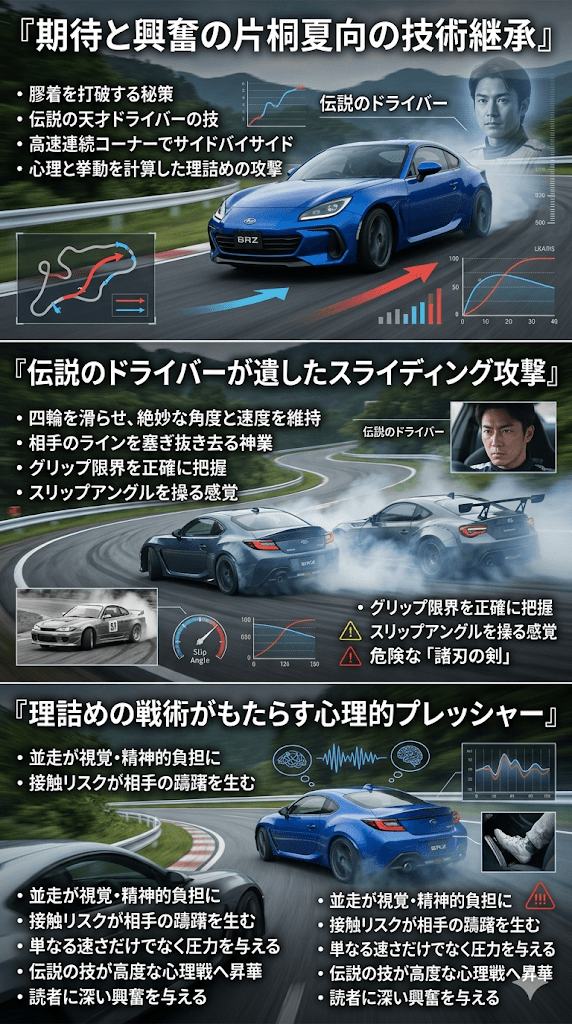 これは、単なる力任せのオーバーテイクではなく、相手の心理とマシンの挙動を完全に計算に入れた理詰めの攻撃です。