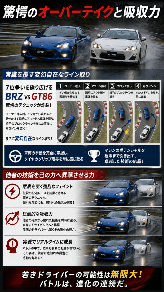 - BRZとGT86による7位争いでは常識を覆すような驚愕のテクニックが披露された