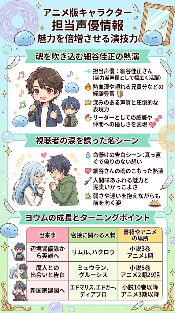 アニメ作品において彼の魅力がさらに倍増している理由の一つに、担当声優の素晴らしい演技が挙げられます。