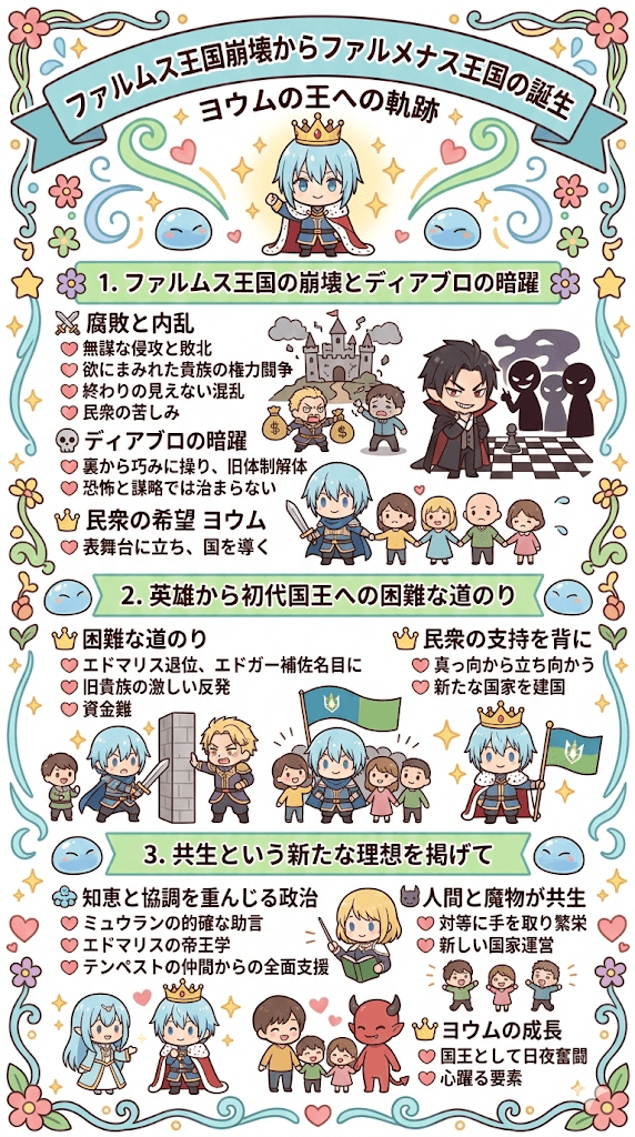 リムルが魔王へと覚醒する直接的な原因となったファルムス王国の無謀な侵攻事件の後、圧倒的な敗北を喫した王国は、欲にまみれた貴族たちの権力闘争による激しい内乱へと突入しました。