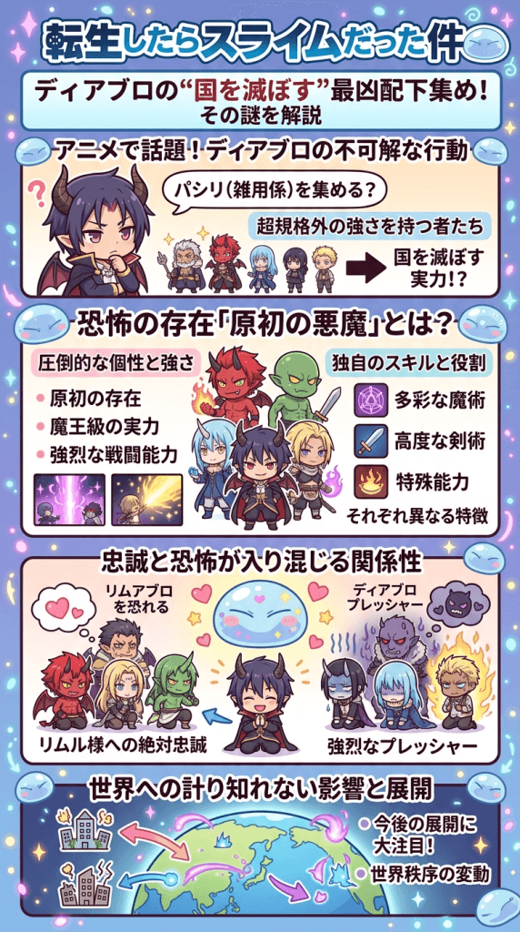 アニメの展開がますます盛り上がりを見せる中、転スラにおいてディアブロが国を滅ぼす部下を勧誘しようとするシーンに驚かれた方も多いのではないでしょうか。