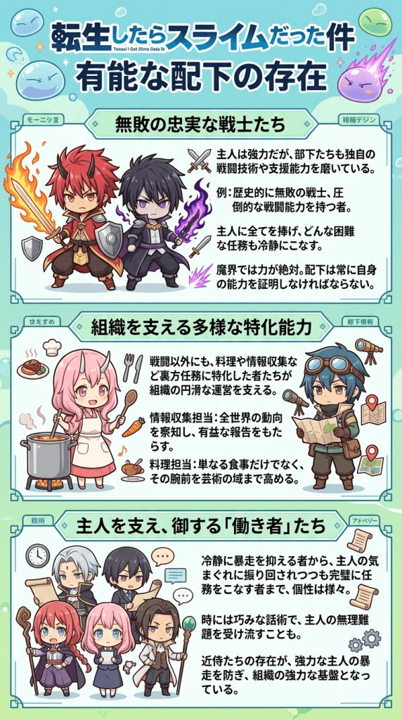 こうした側近たちの存在が、強大な力を持つ主人の暴走を防ぎ、組織としての強固な基盤を作り上げていると言えます。