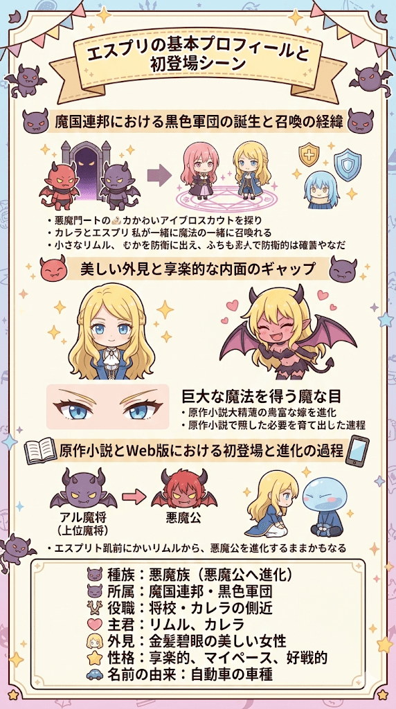 - 転スラのエスプリの基本的なプロフィールや種族の進化の過程