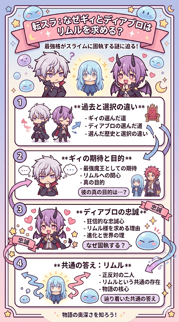 【転スラ】でギィとディアブロという二人の原初の悪魔は作中でも圧倒的な力を持っていますが彼らの行動原理や共通点を知ることで物語の奥深さがさらに見えてきます。