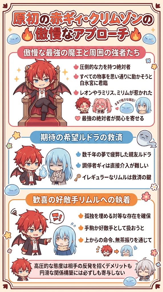 • ギィは傲慢な態度でリムルを操作し自身の目的を達成しようと試みている
