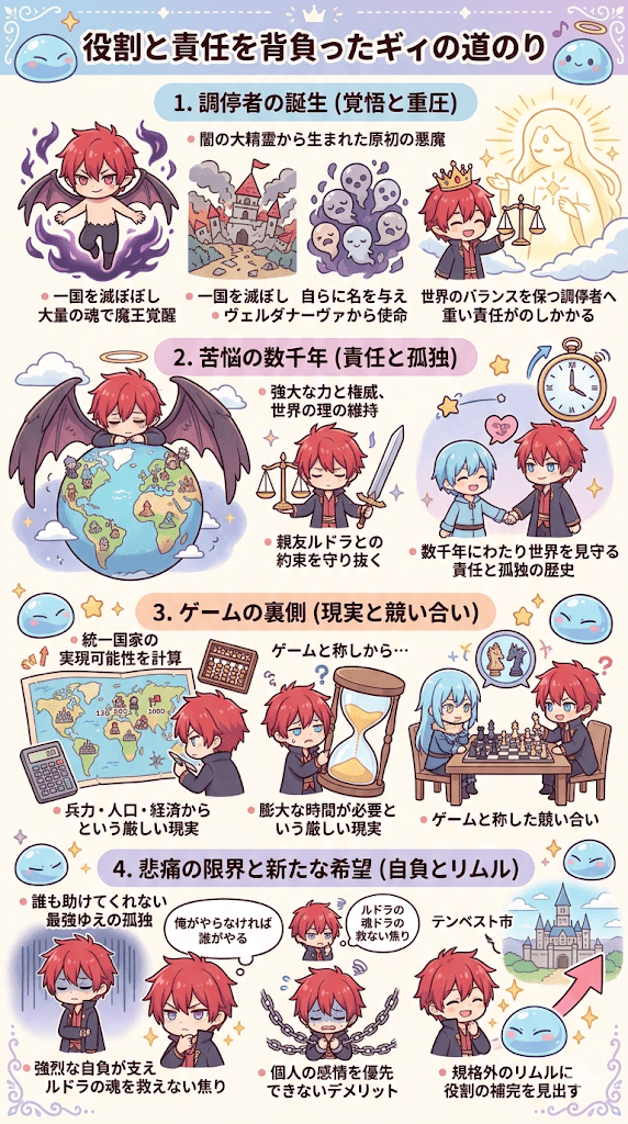 圧倒的な力を持つがゆえの孤独を埋めるためギィはリムルを自らの手駒あるいは好敵手として扱おうとします。