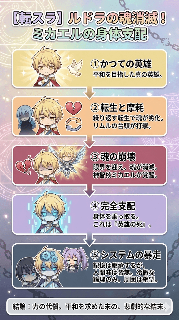 長年の精神的摩耗に加え、リムルたちの台頭という予測不能な事態がルドラの精神に決定的な打撃を与えたのです。