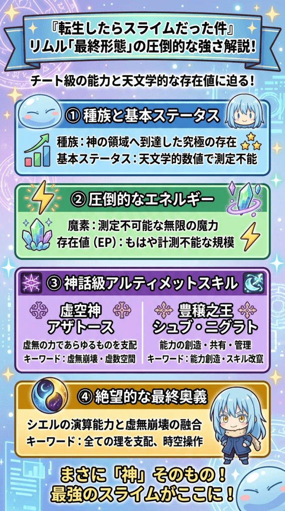本記事では、転スラのリムルの最終形態に関するあらゆるデータを紐解き、強さの秘密を深く掘り下げていきます。