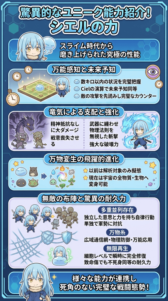 スライム時代から地道に培い、幾度もの戦闘を経て磨き上げてきた固有能力も、現在では全てが規格外の性能へと劇的な変貌を遂げました。