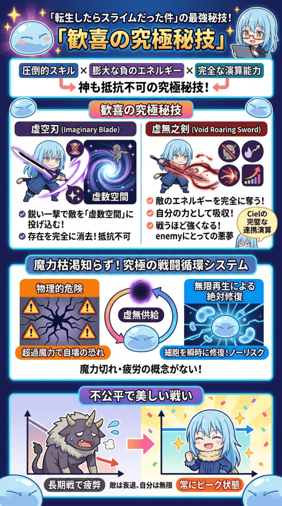 この究極のスキルは、相対する相手を物理的な肉体だけでなく魂ごと喰らい尽くす魂暴喰をはじめ、無限の広がりと深さを持つ虚数空間を内部に備えています。